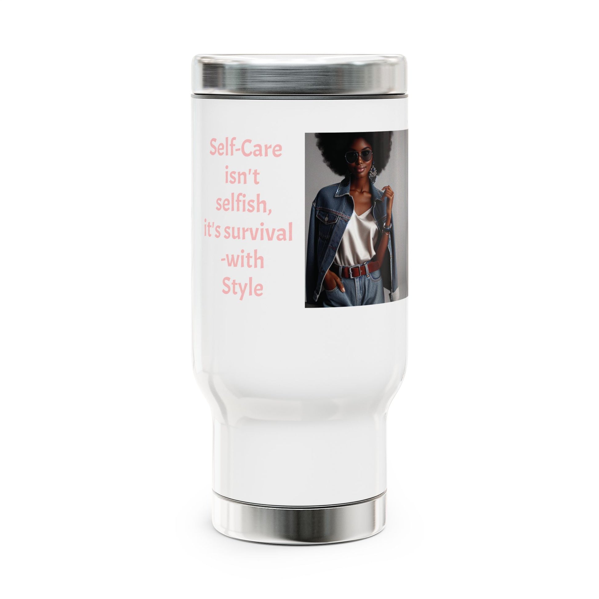 Self-Care Survival Stainless Steel Travel Mug - 14oz Coffee Cup for On-the-Go, Motivational Drinkware, [...]